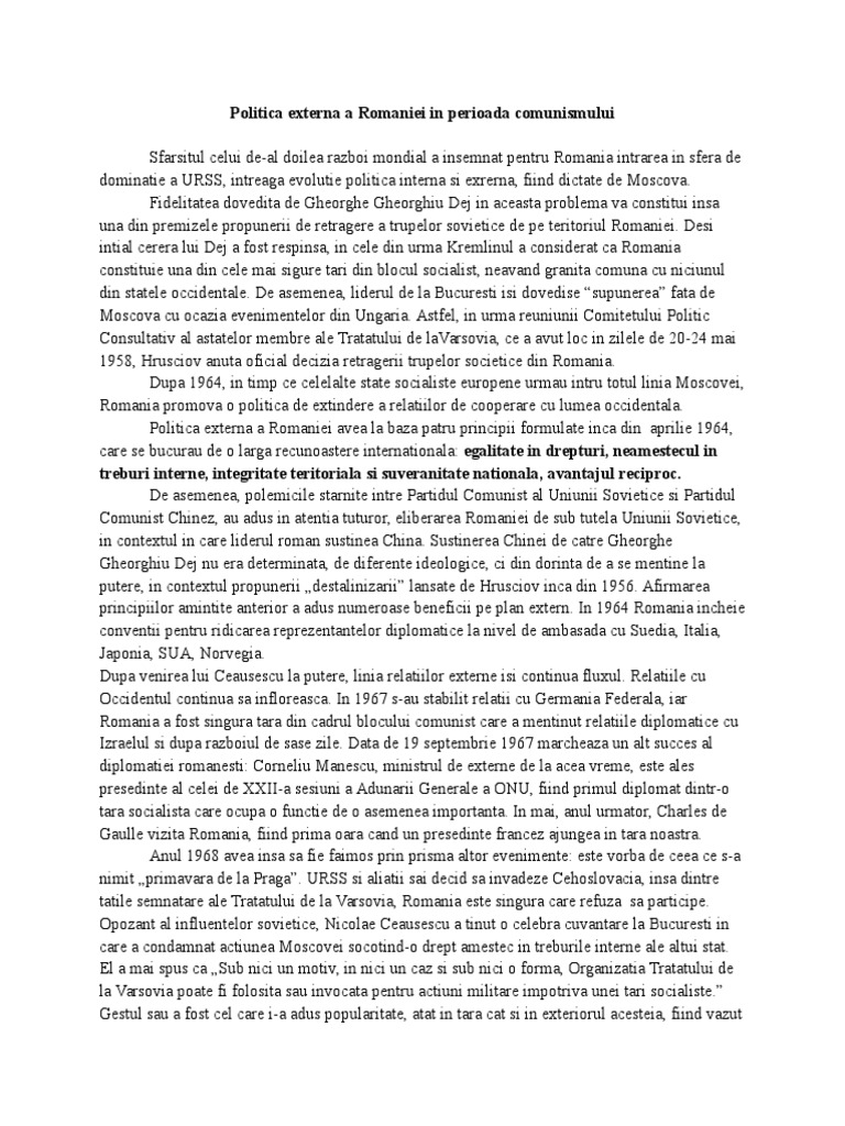 Sunt momente de bucurie, de înălţare, a spus îps pimen, după ce a vorbit în. Autoritarism si totalitarism in romania secolului xx_note de curs. Secțiunea cuprinde informații despre urmele materiale și imateriale lăsate de regimul comunist în românia. Deportarea în urss a germanilor din românia. Acordul general pentru tarife si comert (g.a.t.t.) (1971), fondul monetar international banca mondiala(1972);